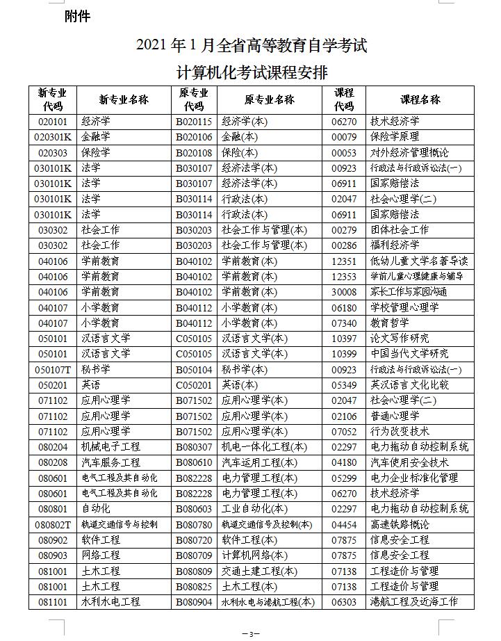 三、考试课程安排。本次报考按照《2021年1月全省高等教育自学考试计算机化考试课程安排》(见附件)共安排“对外经济管理概论(00053)”等69门课程,考生可根据需要自主选择报考课程。已采用计算机化考试的课程一般不再在4月、10月全国统考期间另行安排纸笔考试。