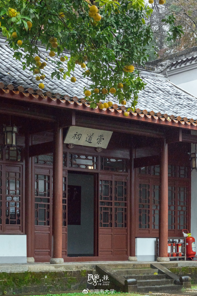 墨瓦白墙,银杏红枫;白空苍茫,枯枝颤巍。