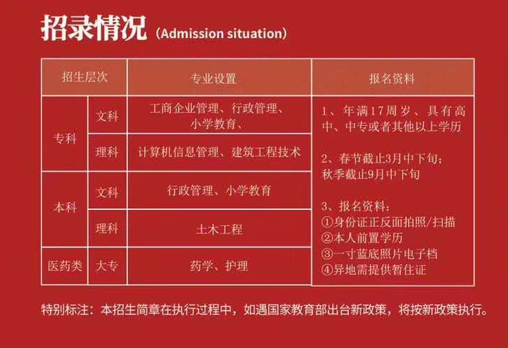 办学40年来,学校累计招收各类学生2000多万,培养毕业生1500多万。目前,高等学历教育在校生400多万人,七成来自基层,一半以上分布在中西部地区。学校已经构建了由总部和45个省级分部、14个行业学院、近4000个学习中心组成,覆盖全国城乡、服务全民终身学习的“办学共同体”。